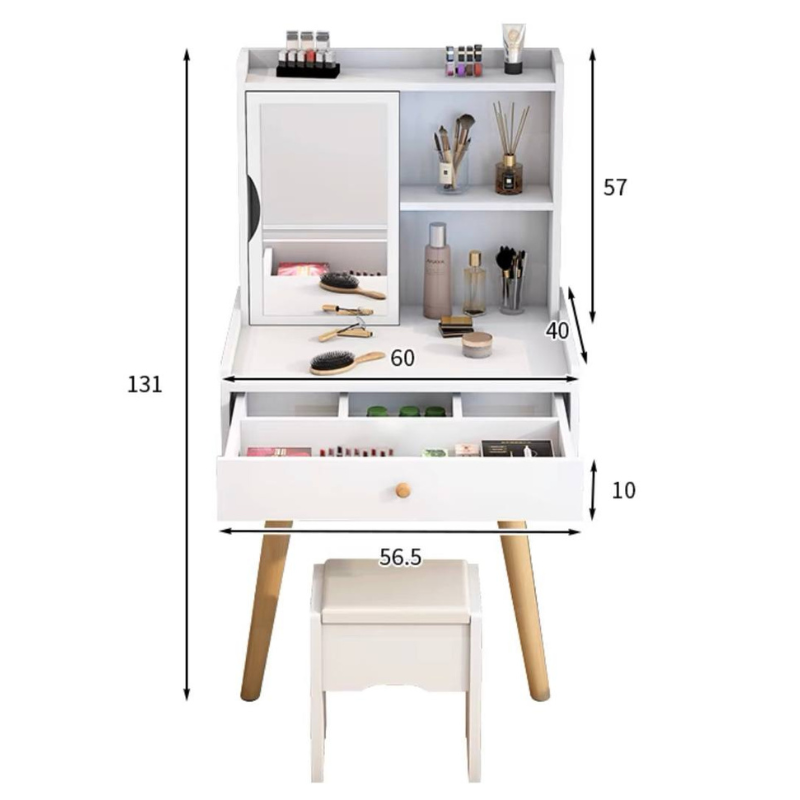 Small dressing table with mirror cabinet and drawer / vanity cabinet with stool